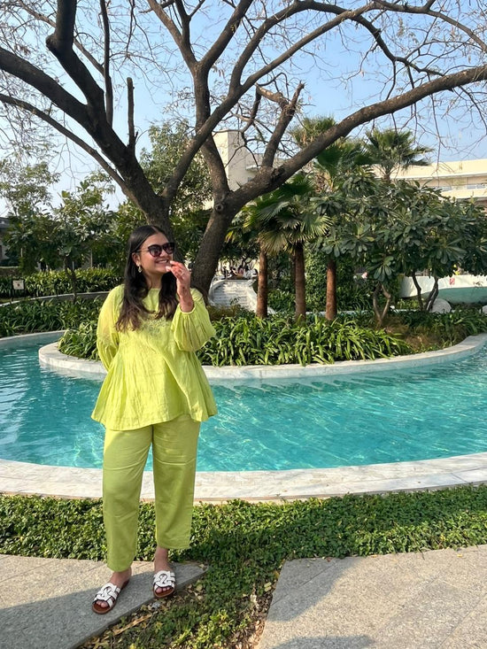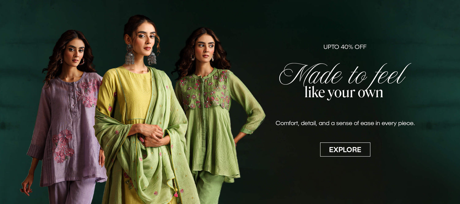 At Beige, we work exclusively with pure, high-quality fabrics. Our garments are crafted in Pure Mul Chanderi—a premium blend of 60% cotton and 40% silk. Known for its lightweight, breathable nature and subtle sheen, it offers all-day comfort while feeling effortlessly elegant, perfect for both everyday wear and special occasions.