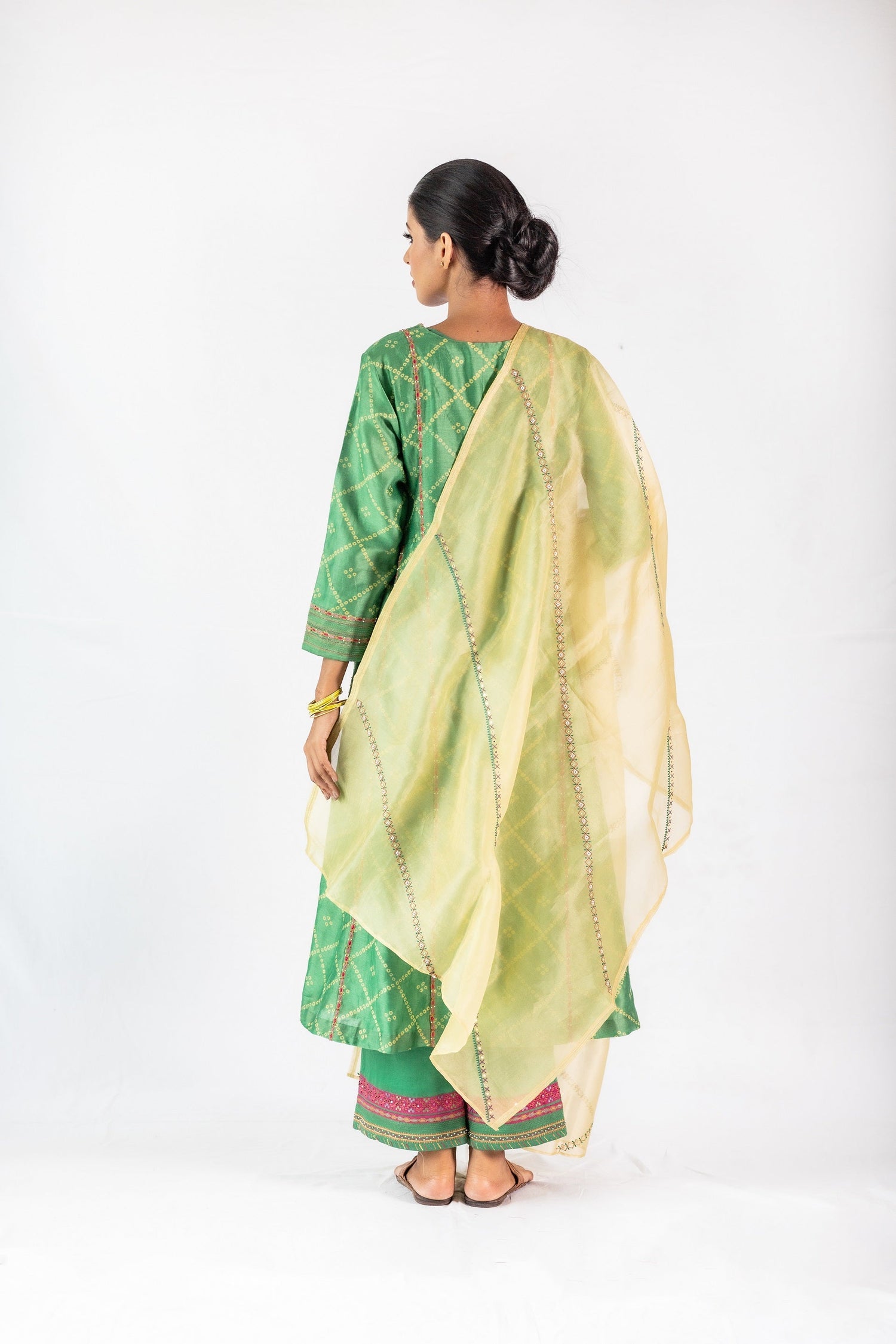 Bandhej Printed Chanderi Kurta Set - Green (RTS)