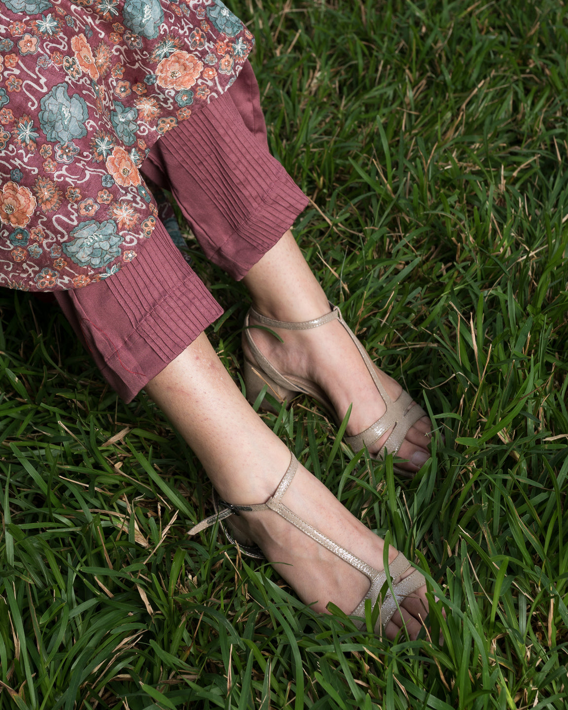 Chanderi hand block printed with highlighting of zari and moti, sequin embellishment paired with Cotton Silk Pintuck Straight Pants