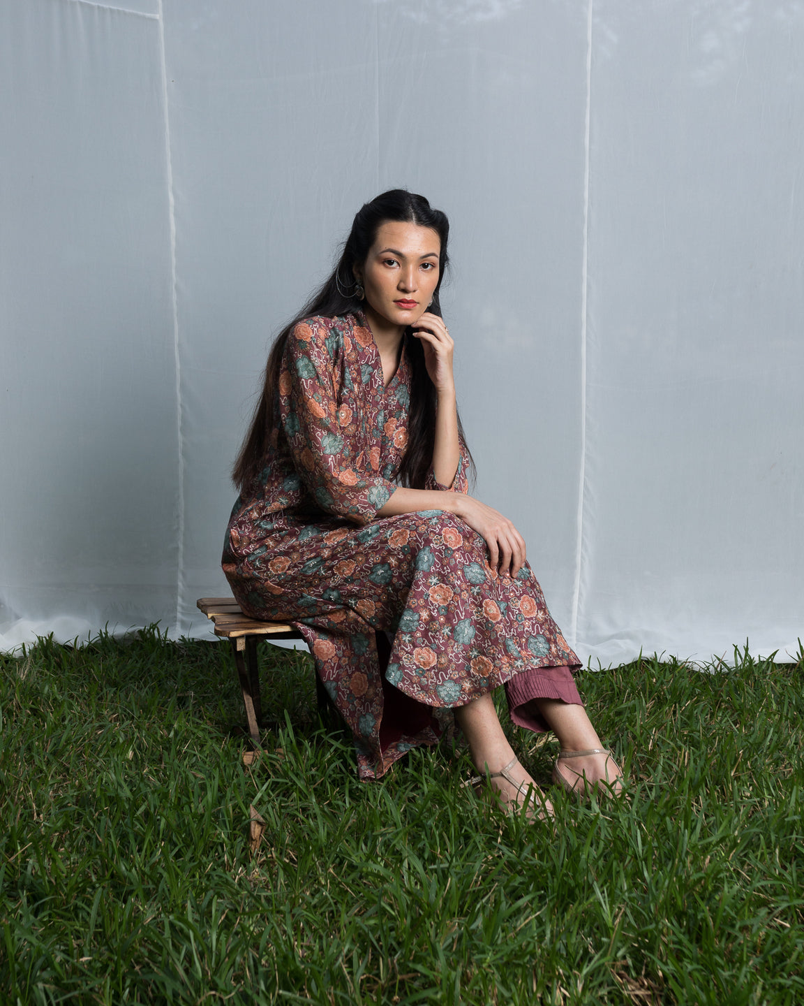 Floral Jaal Hand Block Printed Kurta Set - Wine (RTS)