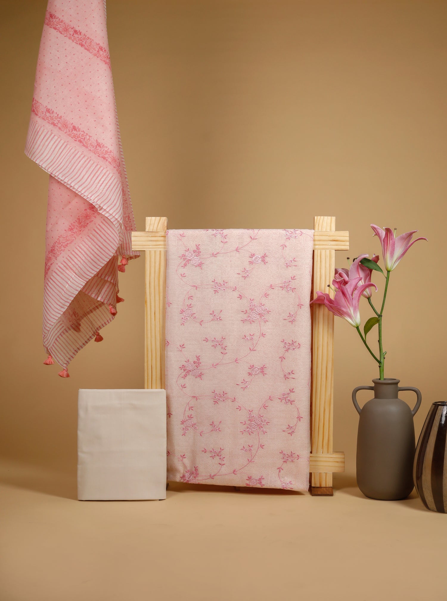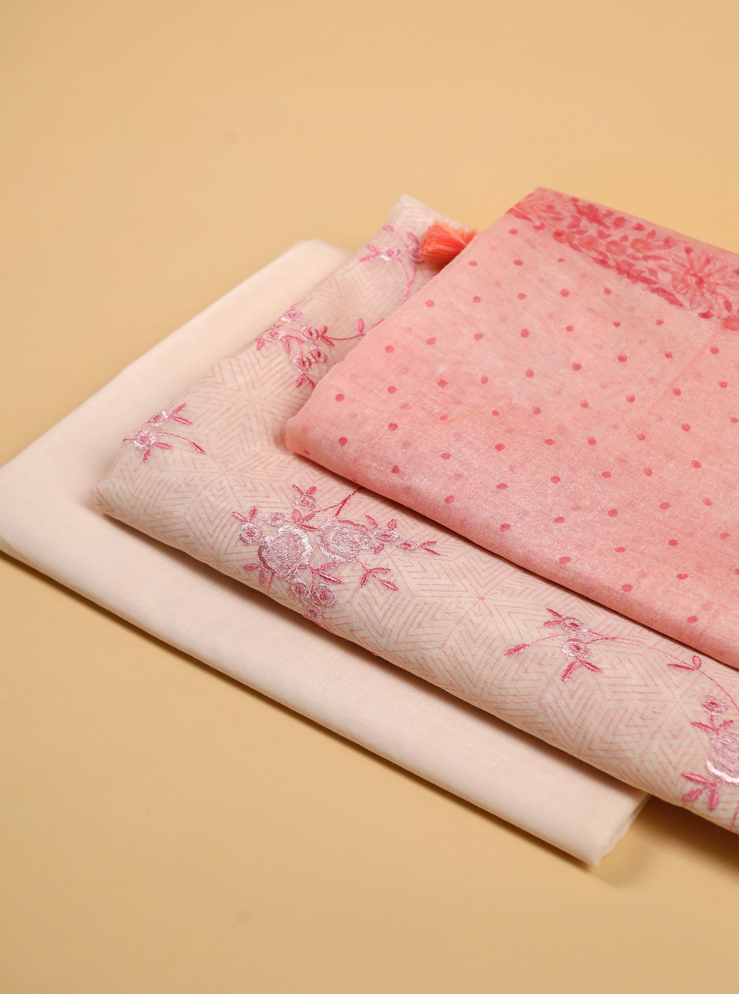 Pure Mul Chanderi Block Printed & Embroidered Pink Suit Piece