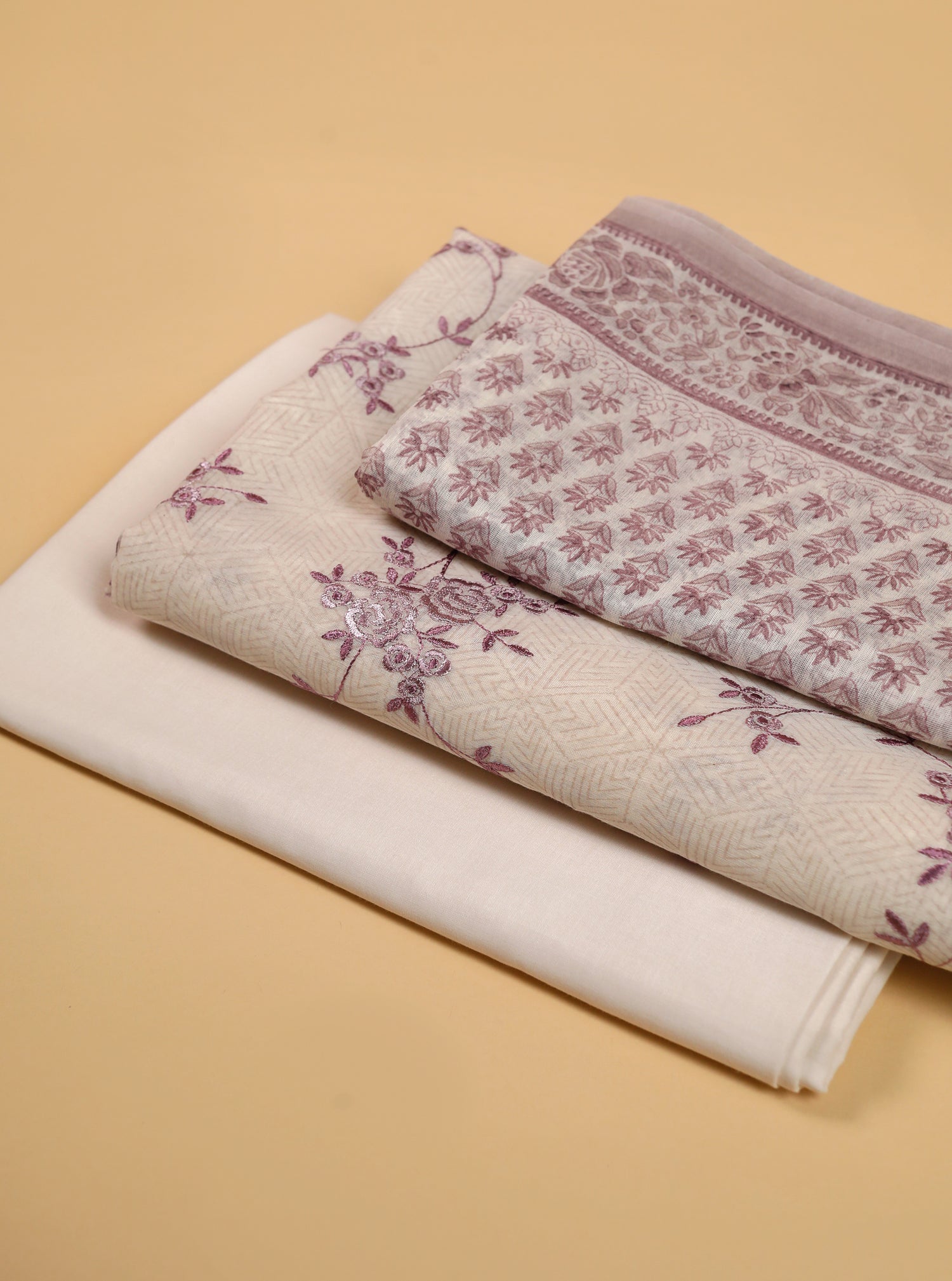 Pure Mul Chanderi Block Printed & Embroidered Purple Suit Piece